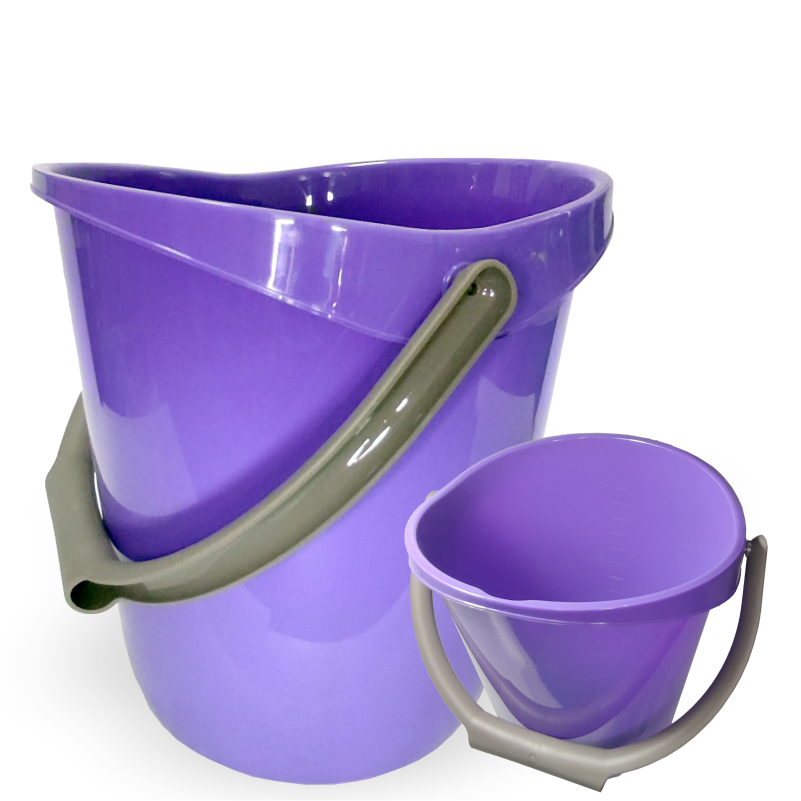 INTERIOR / EXTERIOR. Balde de 12 lts. con escurridor. Plástico super resistente. Apto agua caliente (95°C).