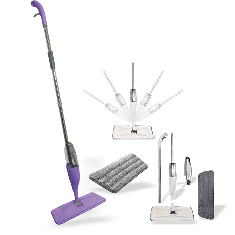 Almohadilla de microfibra lavable e intercambiable. Botella para llenar con agua y el pisos a gusto. Rociado en abanico grande y uniforme.